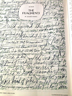 I got a call from Awan Jordan, an illustration editor at the New Yorker, who wanted me to illustrate a story for an upcoming issue. The story (The Fragments by Joshua Ferris) involved a New York snowstorm, a relationship, and a stream of cell phone conversations, overheard in fragments like a Greek chorus. Awan suggested including handwritten bits of these conversations in the art. I welcomed the idea and got to work. I've been working with layers and patterns of handwritten text for some time in my art, and I've always done a lot of diagrams and maps. Quick, informal longhand seemed to work, imitating the feel of intimate conversation.